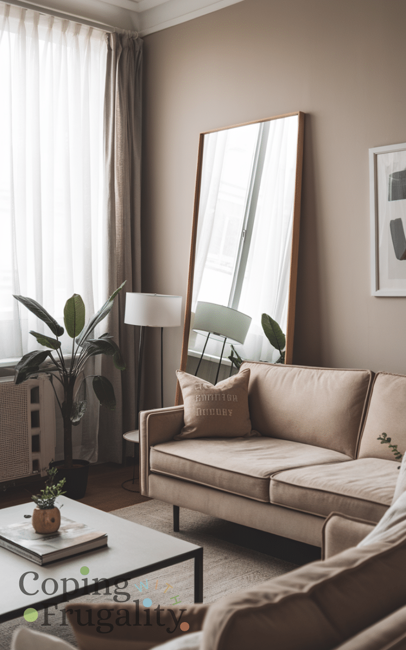 Mirrors are a powerful design tool. This Living Room Layout Idea for Small Spaces on a Budget uses mirrors to reflect light and make the room appear larger. Placing a mirror opposite a window or behind seating instantly enhances the layout without a high cost.