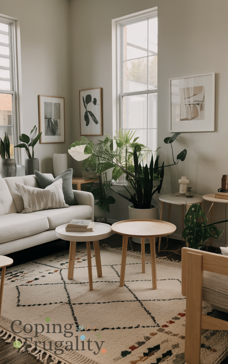 Traditional coffee tables can take up too much space. This Living Room Layout Idea for Small Spaces on a Budget suggests using ottomans, nesting tables, or small stools instead. These alternatives are affordable, flexible, and easier to move. You’ll maintain functionality while freeing up valuable floor space in your living room.