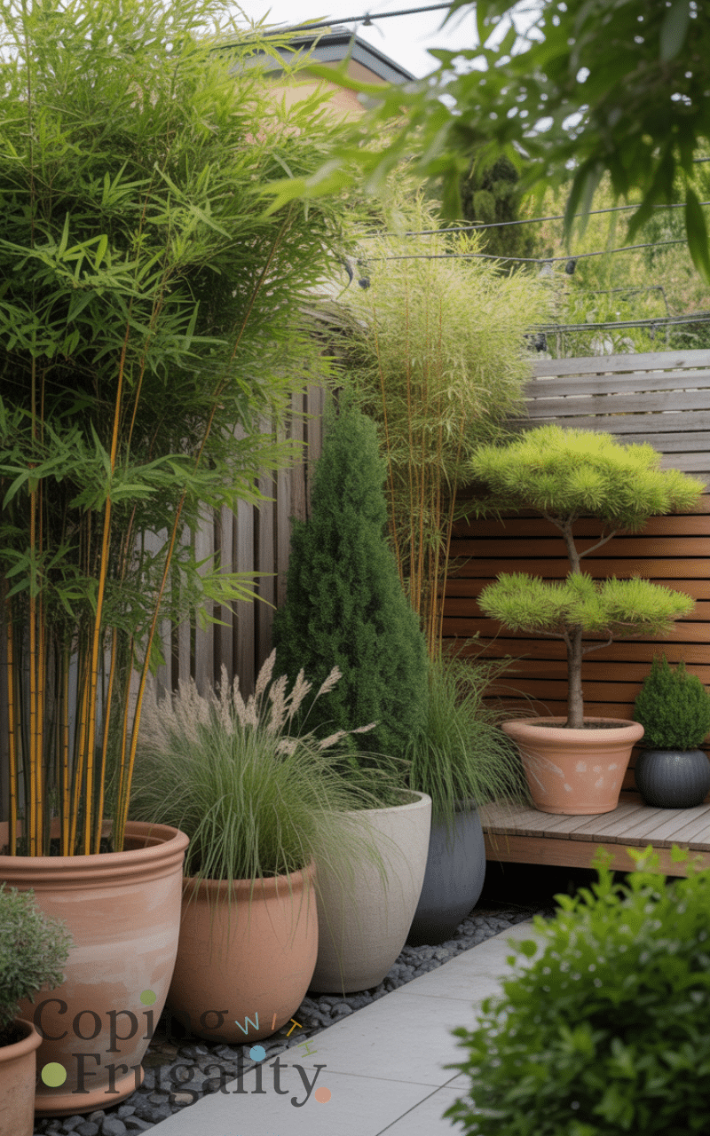 Using tall plants in pots is a flexible small backyard privacy solution on a budget. Plants like bamboo, ornamental grasses, or small trees can block unwanted views while adding greenery. Pots allow you to rearrange your layout whenever needed. This approach is ideal for small yards because it doesn’t require construction, and you can start small and add more plants over time as your budget allows.