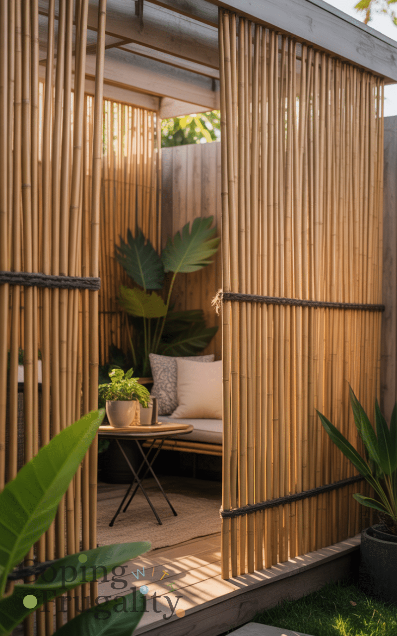 Bamboo screens are affordable, stylish, and eco-friendly small backyard privacy solutions on a budget. They can be attached directly to existing fences or railings, instantly increasing privacy. Bamboo also adds a natural, tropical feel that works well in small spaces. Since bamboo is lightweight, installation is quick and inexpensive. It’s a great option if you want privacy that looks intentional and decorative without spending a lot.