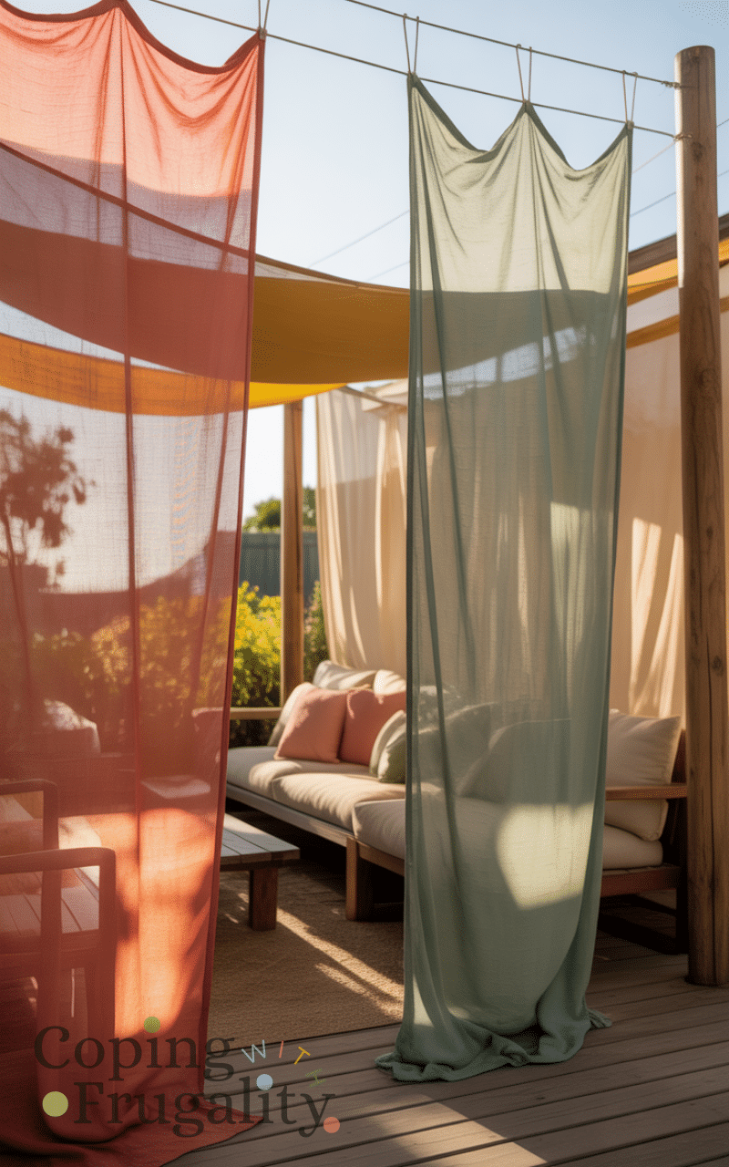 Outdoor curtains are one of the easiest small backyard privacy solutions on a budget. You can hang weather-resistant curtains from a pergola, fence, or even a tension rod. They instantly block views while adding a soft, elegant touch to your space. Choose light colors to keep the area feeling open, or darker shades for maximum privacy. This solution is renter-friendly, easy to install, and perfect for creating a cozy outdoor nook without building anything permanent.