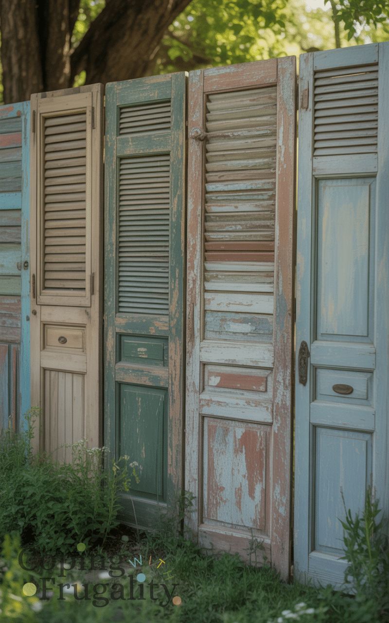 Old shutters or doors can be reused as charming small backyard privacy solutions on a budget. Arrange them side by side to form a unique privacy screen. This idea adds character and works especially well in vintage or rustic outdoor designs. It’s a creative way to recycle while saving money.