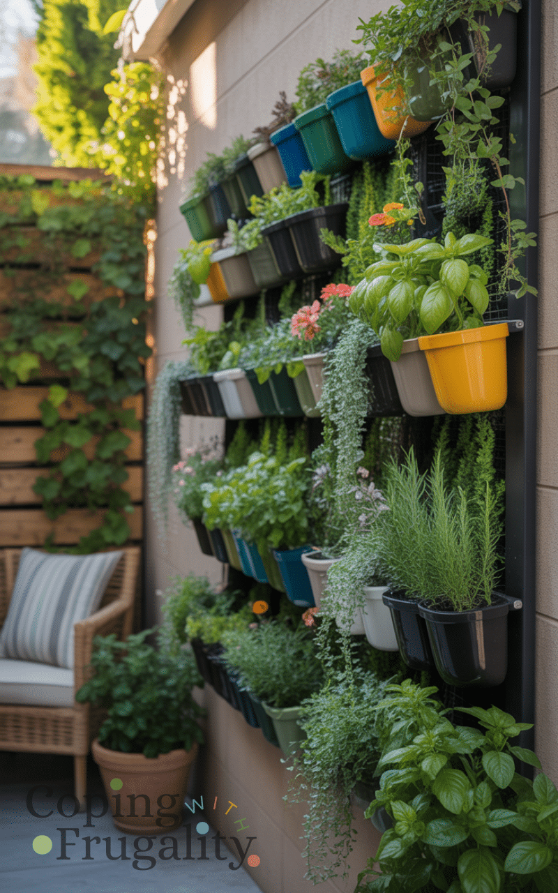 Vertical gardens double as greenery and small backyard privacy solutions on a budget. You can use wall-mounted planters, hanging pots, or recycled bottles to grow plants vertically. This idea is perfect for small backyards because it saves floor space while creating a lush, private atmosphere. Plus, you can grow herbs or flowers for added beauty and function.