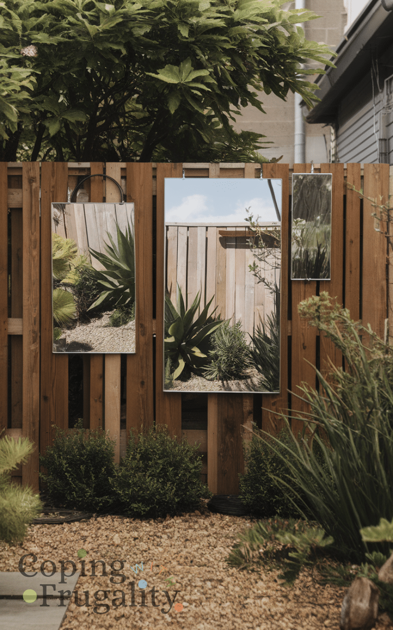 Strategically placing mirrors in your small yard can create an illusion of depth and space, making the area feel larger. Mirrors reflect light and greenery, adding brightness and charm without costing much. They can be hung on fences or walls and paired with climbing plants for a stylish effect. Using mirrors creatively is a clever tactic in small yard landscaping on a budget, turning limited space into a visually expansive and welcoming retreat.