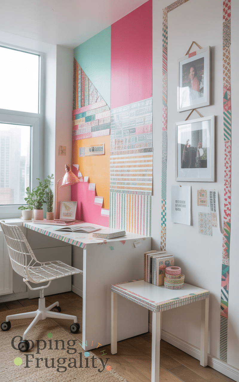 Washi tape is a creative and low-cost option for Temporary Home Decor for Renters on a Budget. You can create geometric wall designs, frame artwork, or decorate furniture edges. It removes easily and allows endless creativity, making it perfect for renters who love DIY décor without commitment.