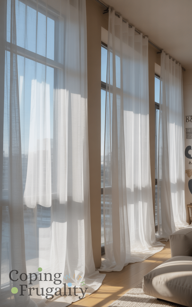 Curtains can transform a room, especially when using tension rods that require no drilling. This idea fits perfectly into Temporary Home Decor for Renters on a Budget since tension rods are inexpensive and reusable. Light, airy curtains soften the space, add privacy, and make windows look larger without risking wall damage.