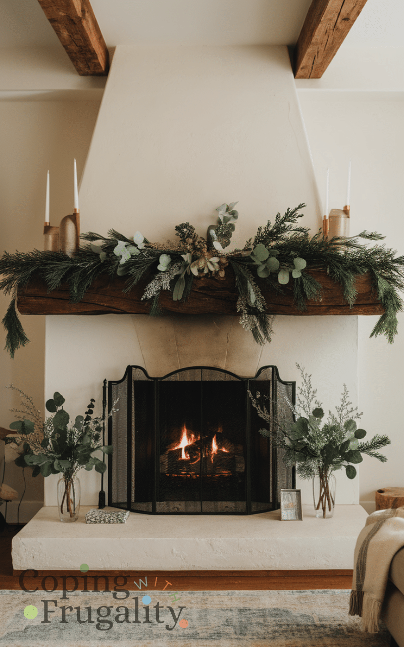 Best Winter Fireplace Decor Ideas on a Budget often include greenery like pine boughs, eucalyptus, or faux winter foliage. Place them across the mantel or in small vases for a natural, fresh look that’s affordable and reusable. With Best Winter Fireplace Decor Ideas on a Budget, greenery brings texture, color, and a welcoming winter vibe without needing expensive floral arrangements.