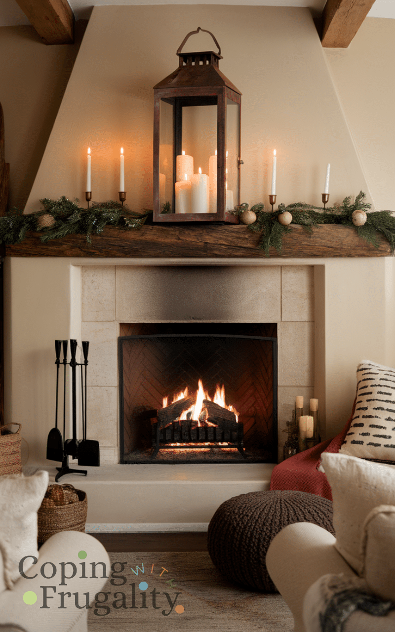 Best Winter Fireplace Decor Ideas on a Budget shine when you add rustic lanterns filled with candles or fairy lights. Place them on the floor near the hearth or on the mantel for a cozy look. With Best Winter Fireplace Decor Ideas on a Budget, lanterns bring both style and warmth, creating a holiday-inspired atmosphere that’s simple and affordable.