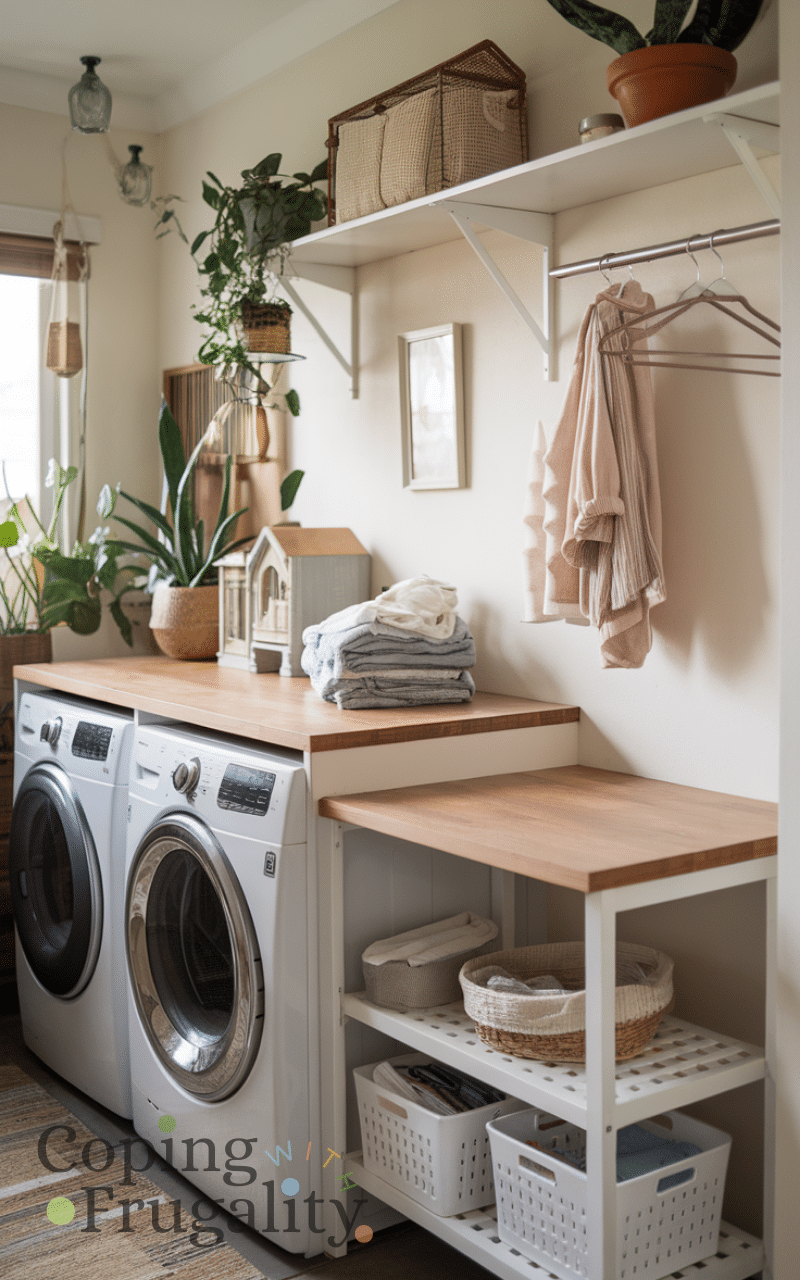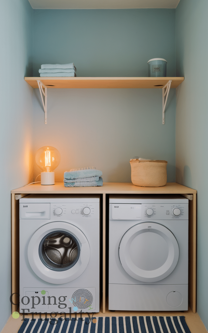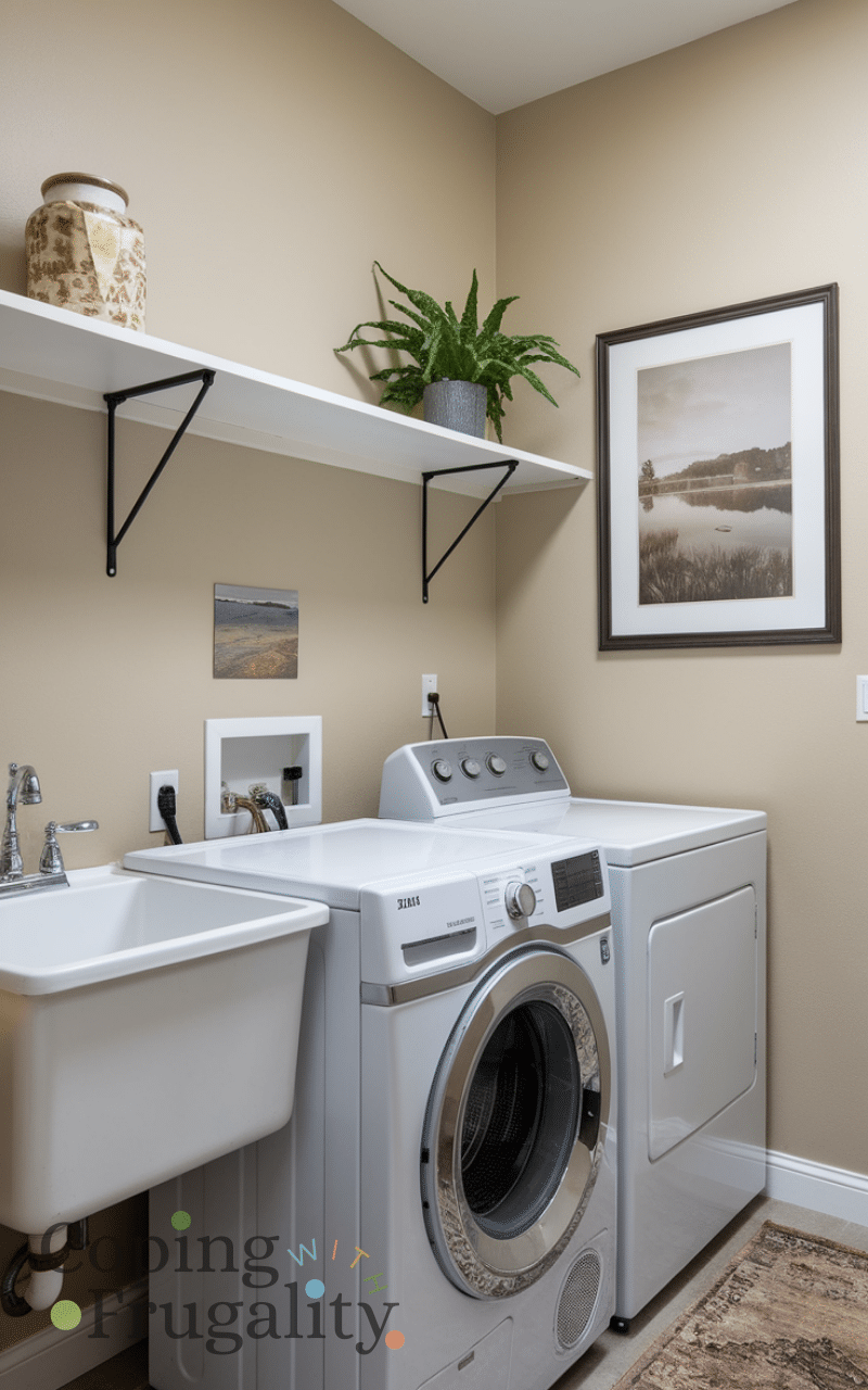 Finally, add personal touches like framed prints, decorative jars, or small art pieces. These make the laundry area feel like a designed part of your home rather than a purely functional space. Adding personal decor finishes your compact laundry area makeover on a budget, ensuring the space is not only practical but also cozy and visually appealing.