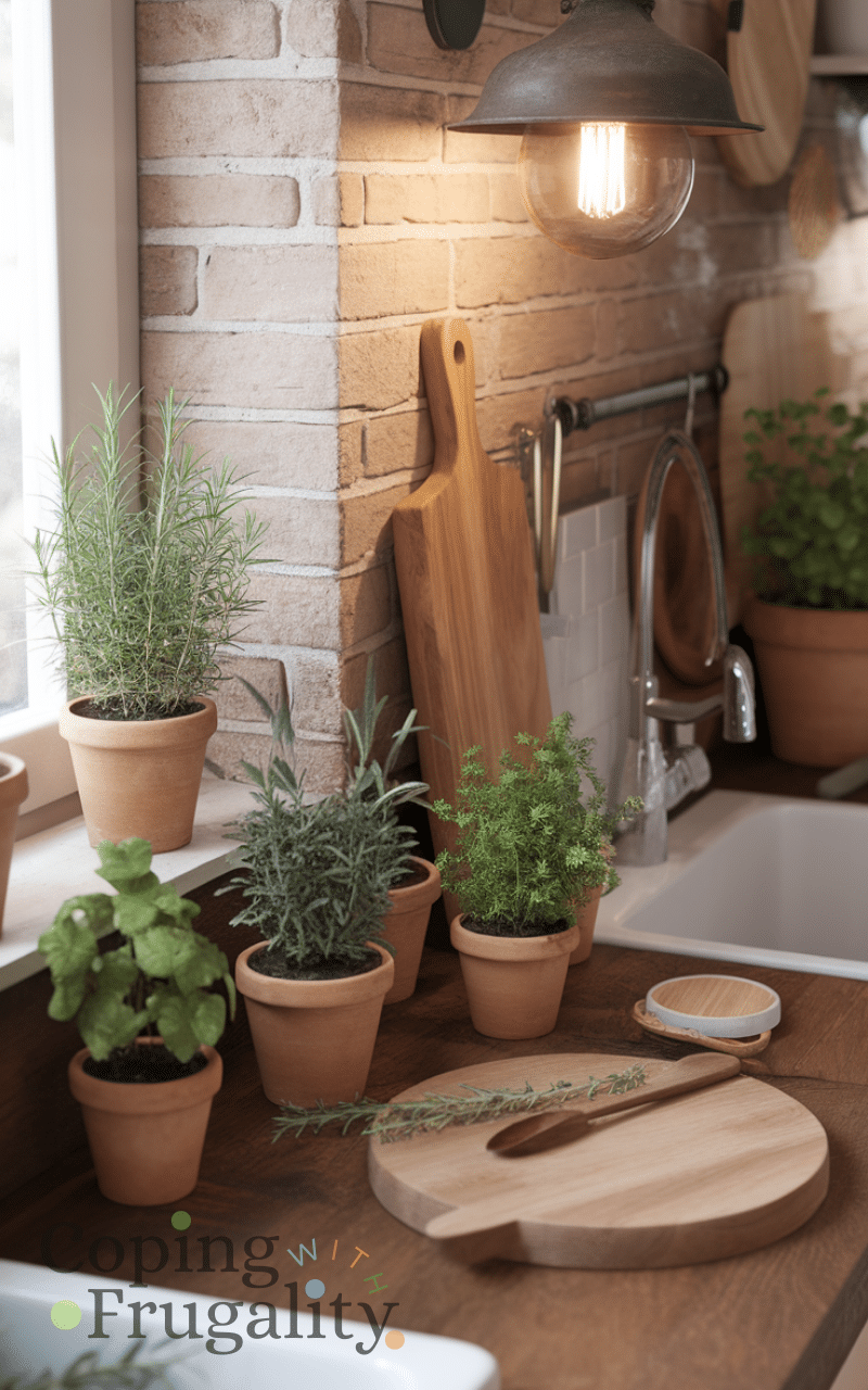 Small potted plants or herbs like rosemary, thyme, or parsley can make your kitchen feel lively and fresh. Cozy winter kitchen styling on a budget is easy with hardy indoor plants that thrive in indirect light. Greenery adds color, texture, and a natural element that balances warm decor elements. Even a few plants on a windowsill or countertop can make the space feel inviting and comforting. Herbs double as practical cooking ingredients, so you’re combining style with function while enhancing the cozy winter atmosphere in your kitchen without spending much.