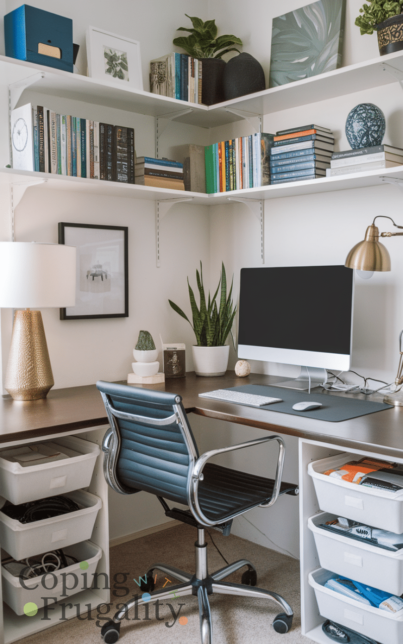 A desk organizer keeps your home office corner setup on a budget neat and efficient. You can use DIY solutions like mason jars, shoeboxes, or small baskets to store pens, notebooks, and other supplies. A tidy desk helps you focus and makes your budget-friendly home office corner setup feel more professional. Choosing affordable organizers keeps your space functional and stylish without costing much.
