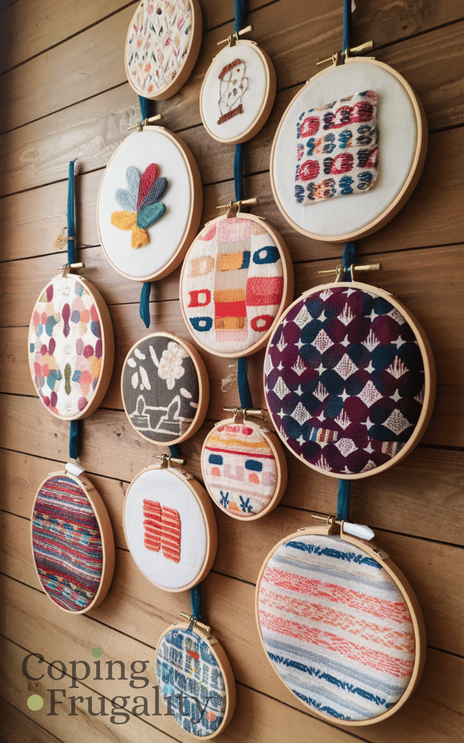 Embroidery hoop wall art is an elegant DIY wall art idea on a budget that brings texture and charm to your decor and you can stretch beautiful fabric inside embroidery hoops and hang them in groups on the wall and this idea works great for bedrooms and nurseries adding softness and warmth to the room.