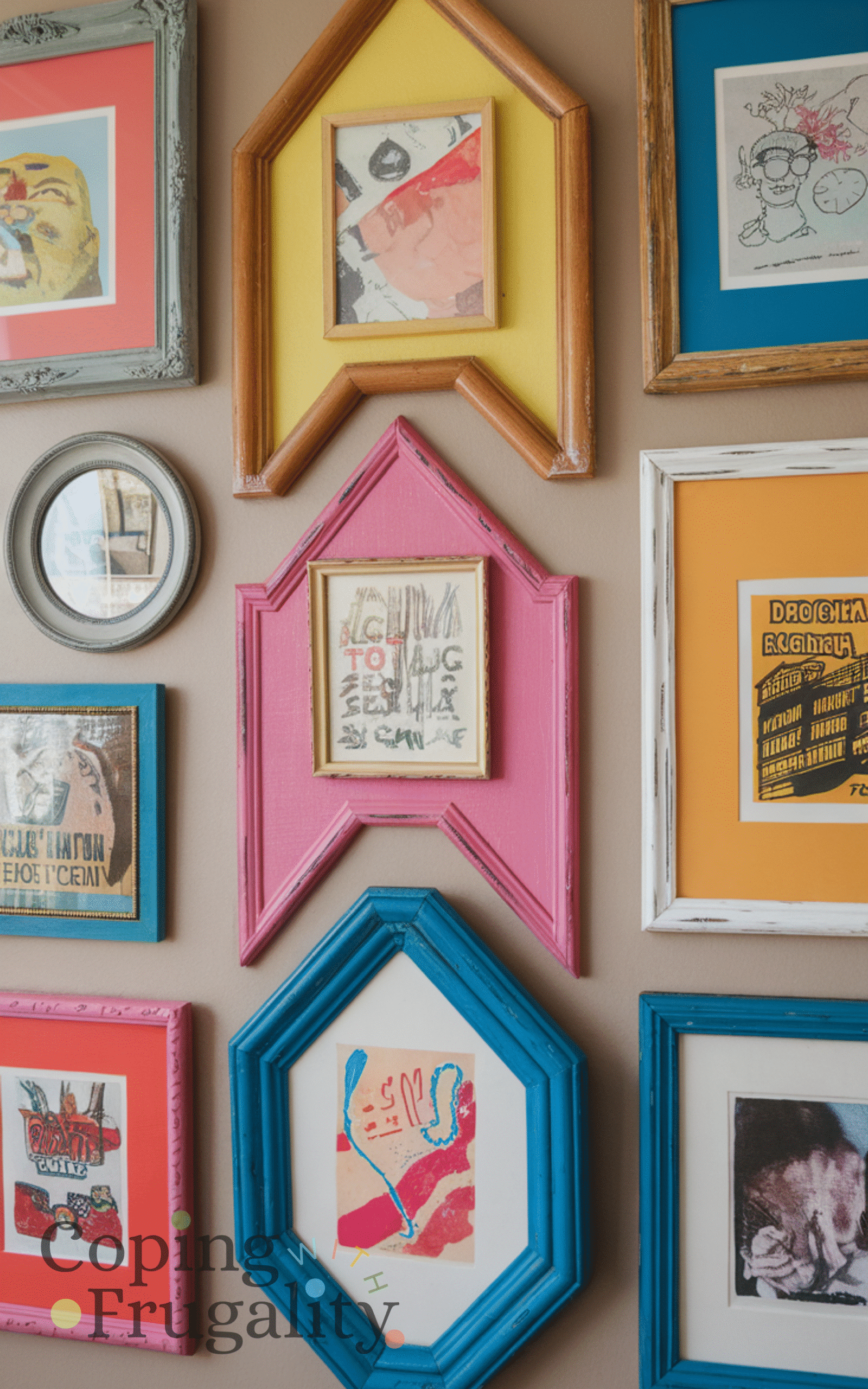 Reusing old frames is a smart and sustainable DIY wall art idea on a budget and you can repaint frames in bright colors or distress them for a vintage touch then fill them with prints or drawings and it saves money and gives new life to forgotten pieces.