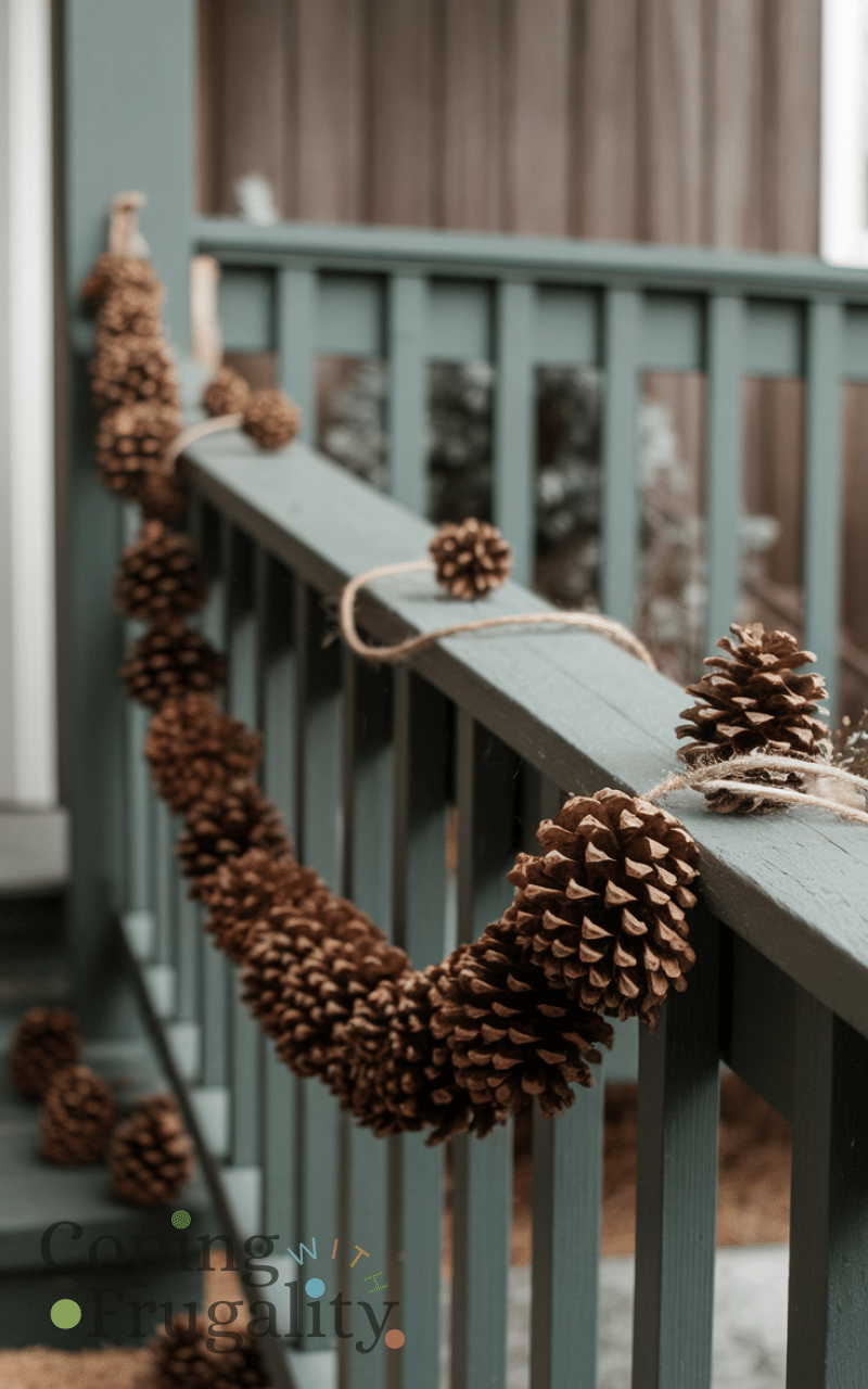 Pinecone garlands bring a natural, wintery charm to your porch. Simply string pinecones with twine or ribbon and hang them along railings, windows, or doorways. This easy DIY project is inexpensive, creative, and adds texture and warmth to your entryway. Pinecone garlands perfectly complement other decorations, tying together your seasonal theme. Incorporating this into your easy front porch makeover ideas for winter on a budget adds a rustic, handcrafted feel that makes your space feel cozy and personalized.