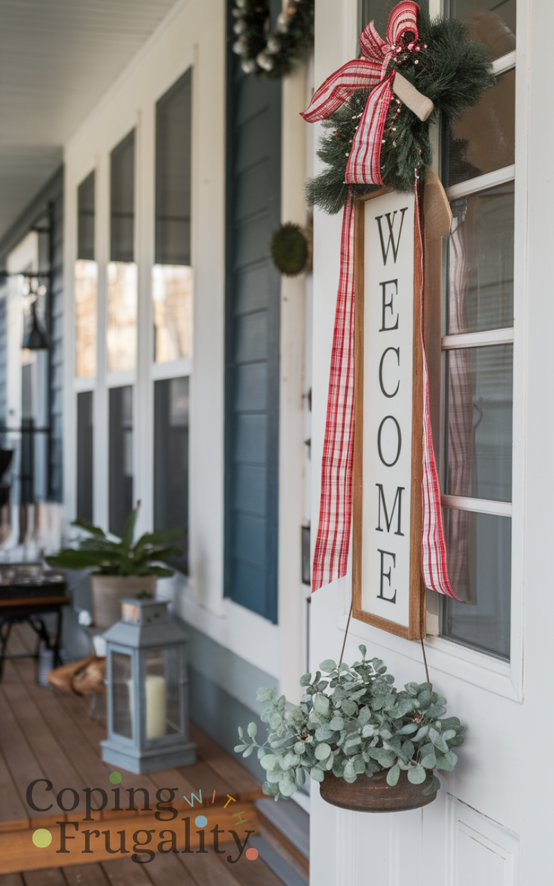 Beyond wreaths, simple door décor can refresh your winter porch. Consider hanging a festive sign, a ribbon garland, or a small hanging planter to add personality and color. These touches are inexpensive, versatile, and easy to swap out throughout the season. Updating your door décor is a straightforward way to complete your easy front porch makeover ideas for winter on a budget. It sets the tone for the season, ensuring your entrance feels cheerful, welcoming, and thoughtfully styled without requiring a large investment.