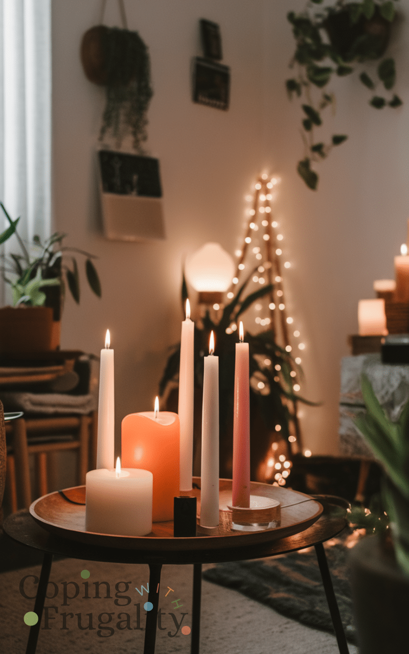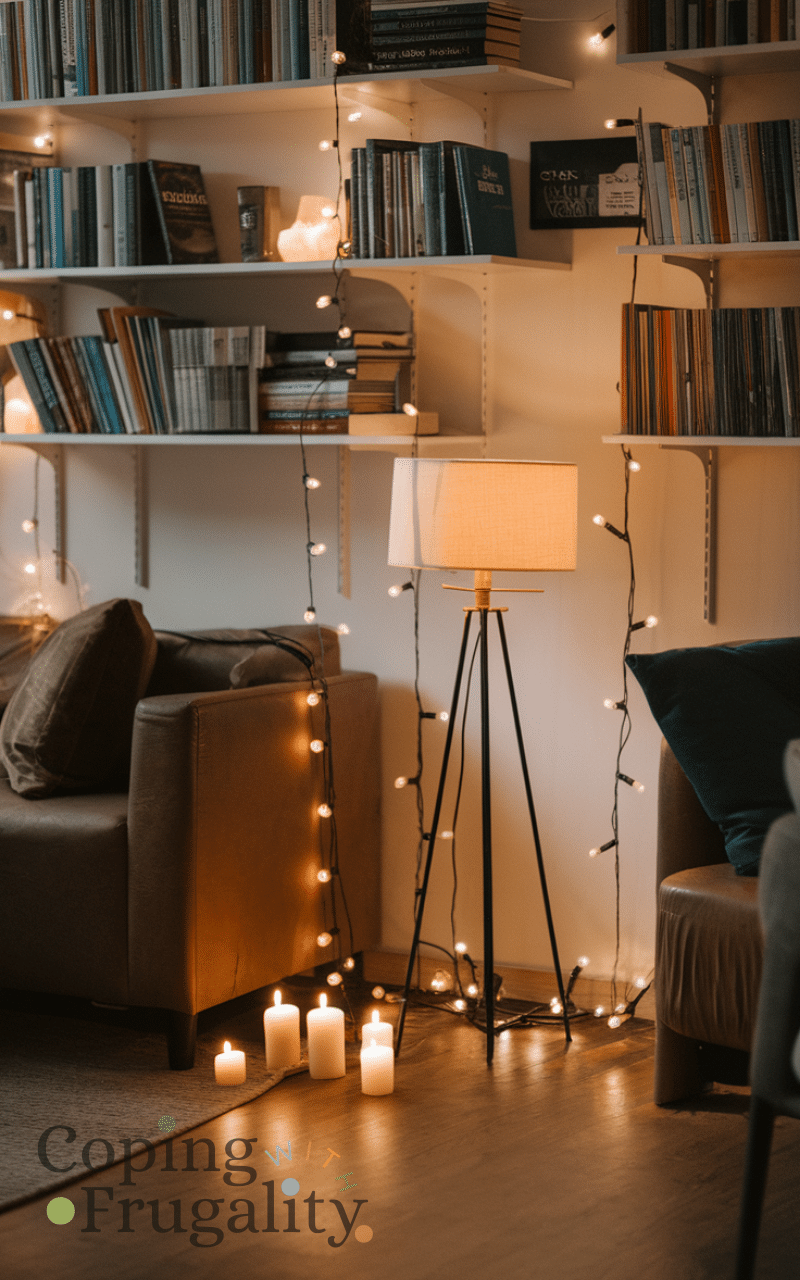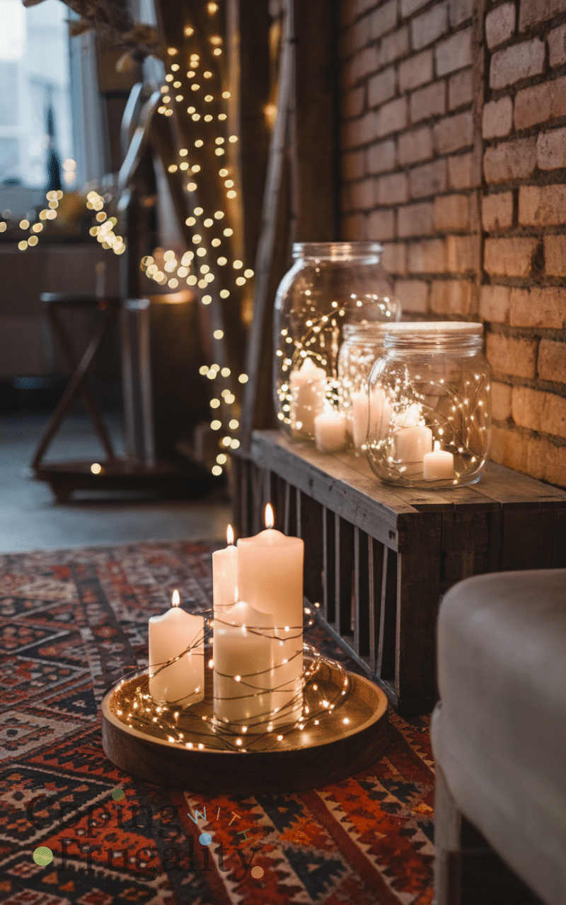 Combining candles with fairy lights adds both sparkle and warmth. Affordable lighting tricks to warm a room on a budget include wrapping fairy lights around candle arrangements or placing them inside jars. This duo creates a gentle, magical glow that elevates the cozy factor in any room without spending much.