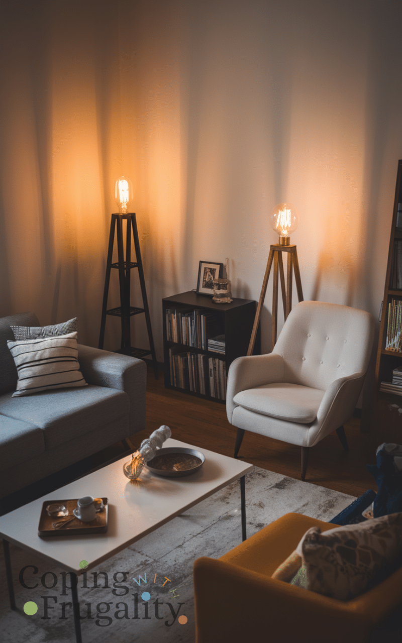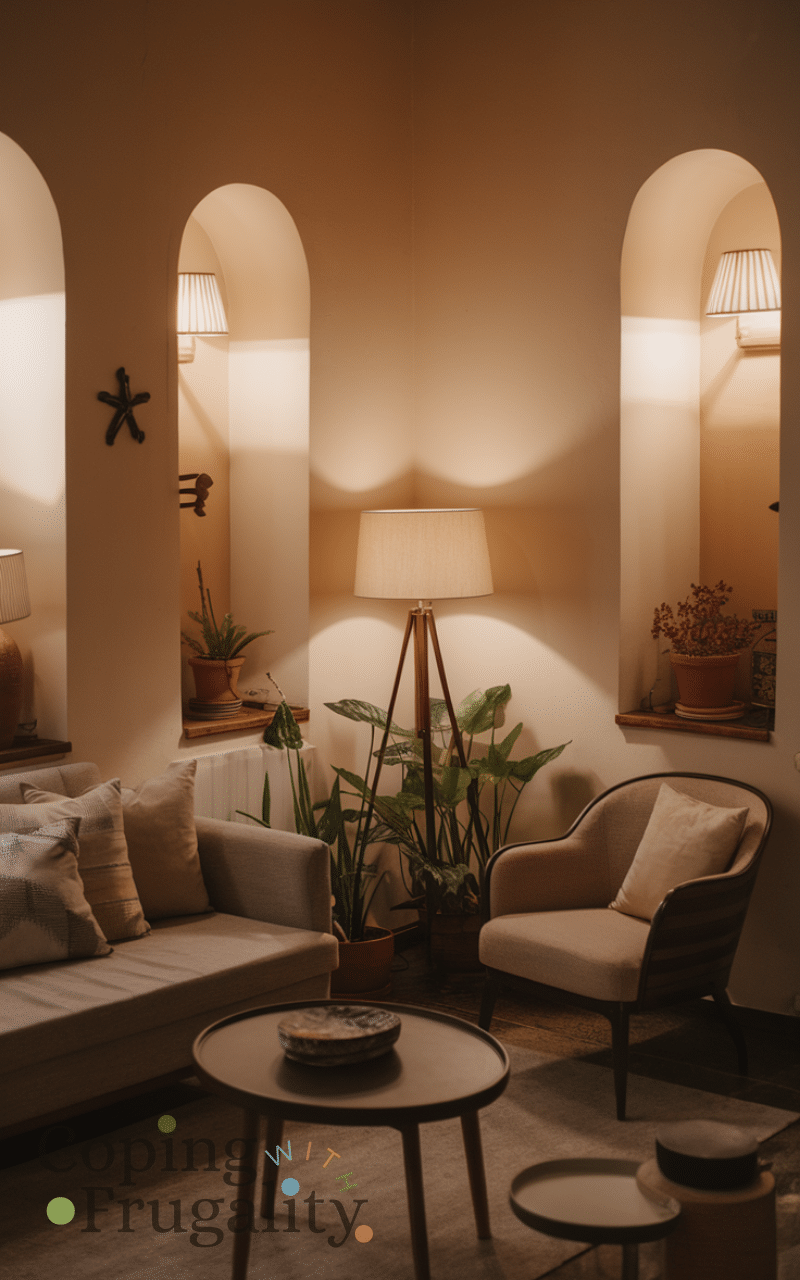 Tall floor lamps in corners draw the eye upward and fill dark spaces with light. Affordable lighting tricks to warm a room on a budget include finding thrifted lamps and using warm bulbs. Corner lighting softens shadows, creates depth, and gives any room a welcoming feel while keeping your budget intact.