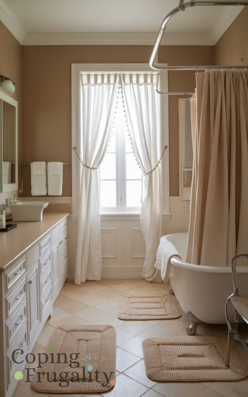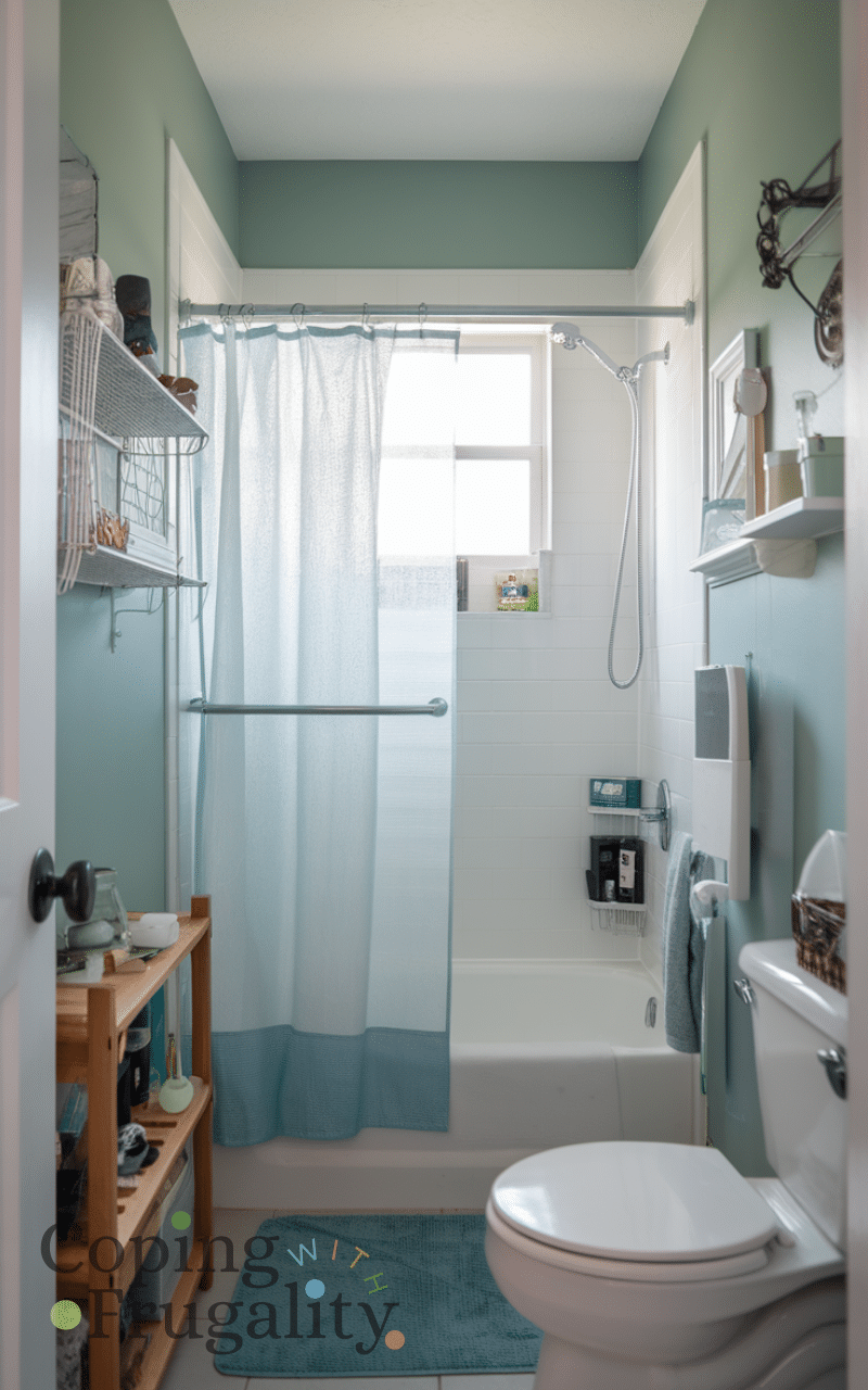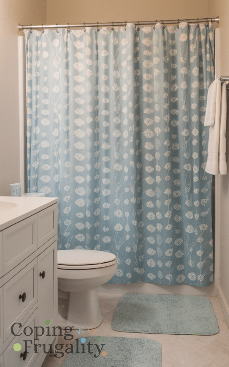 A new shower curtain can act as a design statement. Choosing a light color, subtle pattern, or vertical stripes helps elongate the space. This easy small bathroom makeover on a budget solution instantly updates the room without tools or effort. It’s one of the fastest ways to refresh the bathroom while adding personality and style.