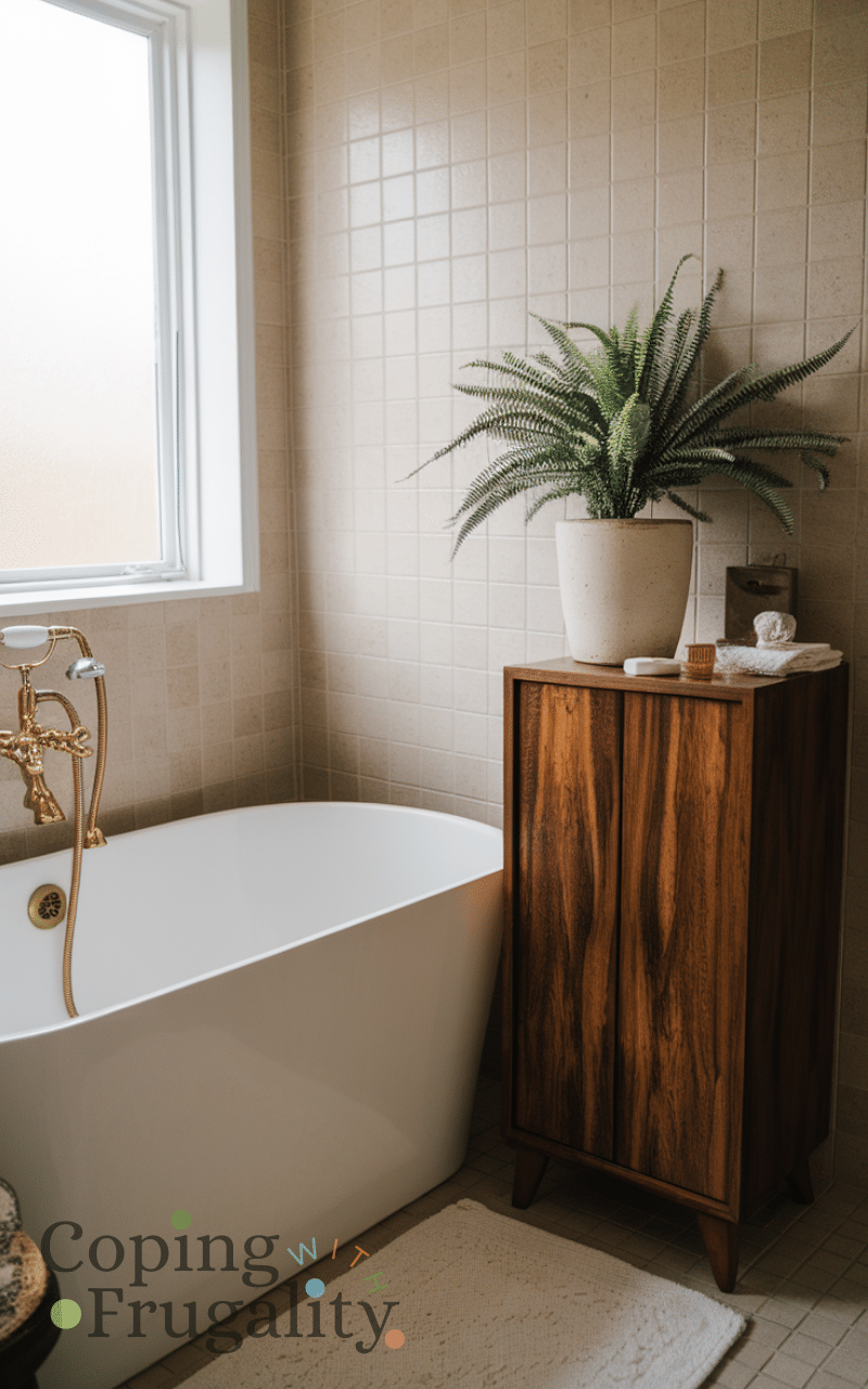 Plants bring life and freshness into any space. Adding a small plant is an easy small bathroom makeover on a budget idea that makes the room feel inviting. Choose low-maintenance plants that thrive in humidity. Even faux plants can create the same visual impact if natural light is limited.