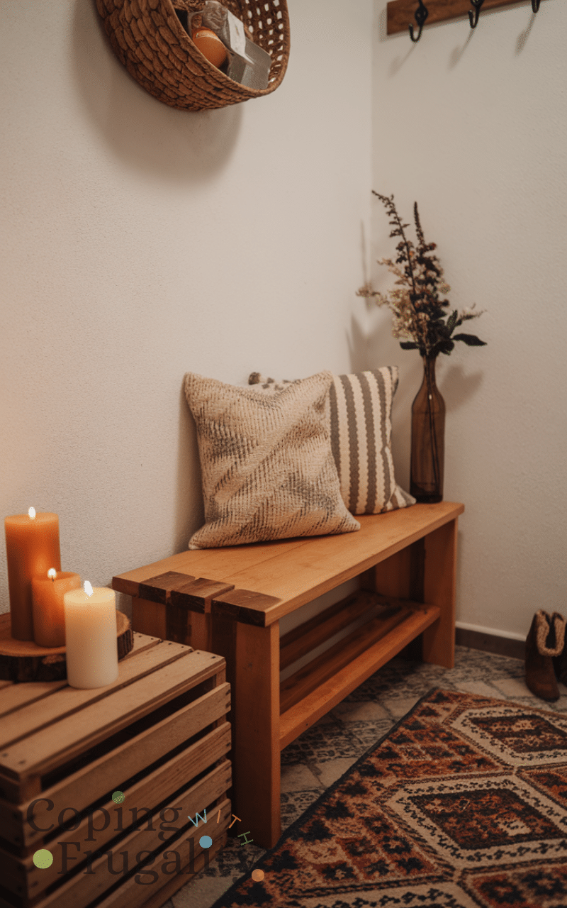 A small bench is both practical and stylish, giving guests a spot to sit while putting on shoes. Opt for one with storage underneath for shoes or baskets to keep the space organized. It instantly adds functionality while making your entryway feel welcoming and curated. Incorporating a bench is an easy solution that elevates the style of your space, making it a smart move for an easy small entryway makeover on a budget.