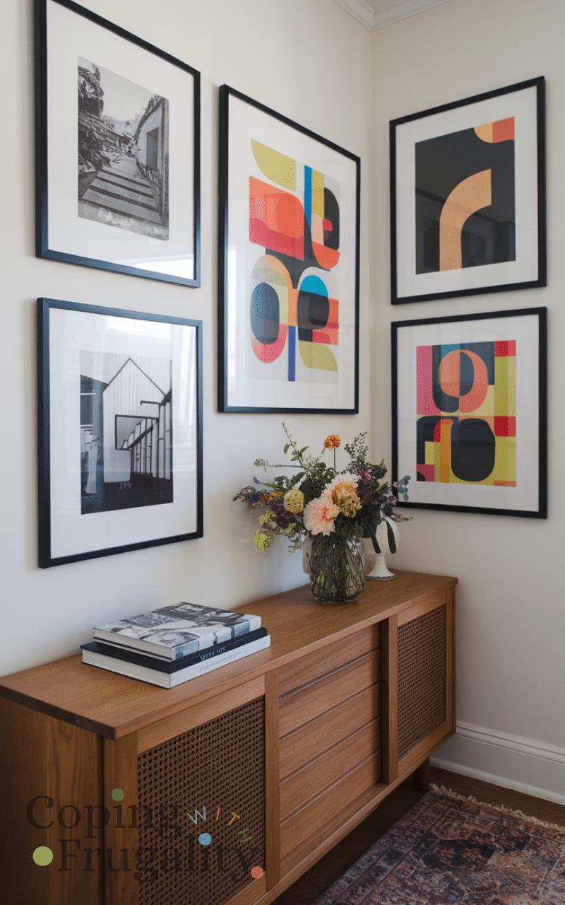 Showcasing artwork, prints, or framed photos adds personality and character to your entryway. Pick pieces that reflect your taste and style, creating a mini-gallery wall if space allows. Art makes the entryway feel lived-in and thoughtful, sparking interest for anyone stepping inside. This approach is an affordable and impactful way to refresh your space, perfect for an easy small entryway makeover on a budget that makes guests feel instantly welcome.
