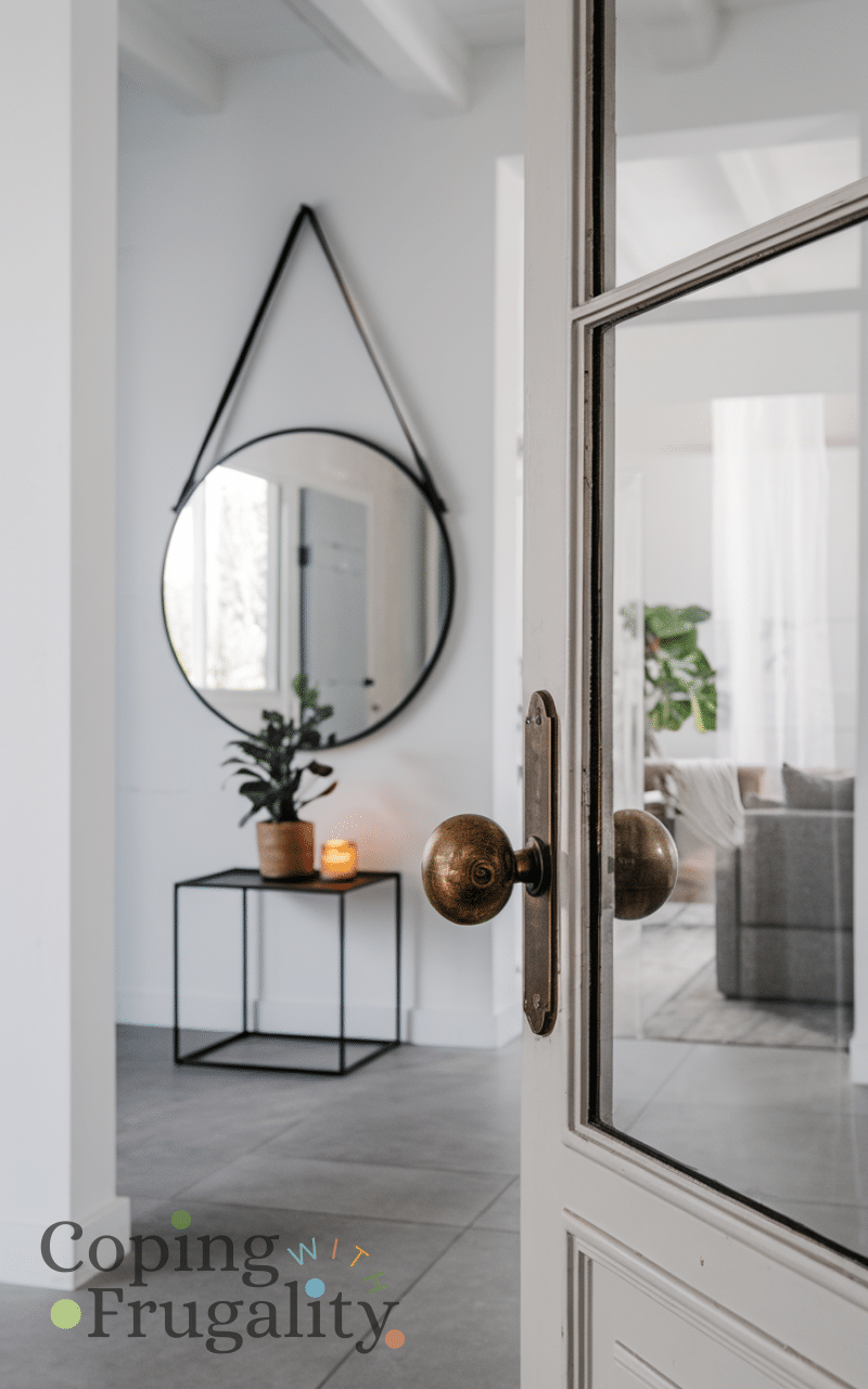 A stylish mirror is one of the easiest ways to give your entryway a fresh look without spending a fortune. Not only does it make the space feel bigger, but it instantly adds a wow factor for guests. Choose a frame that complements your decor, whether it’s rustic wood, sleek metal, or colorful patterns. Position it so it reflects light from windows or lamps, brightening the entryway. A statement mirror is a simple trick that works perfectly for an easy small entryway makeover on a budget, giving your home both style and functionality.
