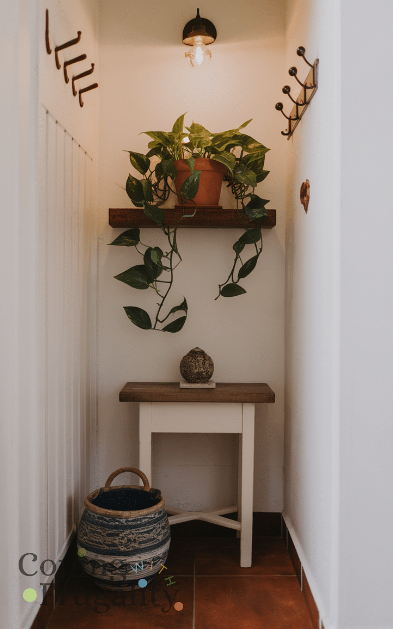 Plants instantly add life and freshness to any space, and your entryway is no exception. Choose low-maintenance plants like pothos, snake plants, or small succulents. Place them on shelves, a small table, or even hang them in a planter. Greenery creates a welcoming environment and adds a pop of color that makes a big impression. It’s one of the simplest ways to achieve an easy small entryway makeover on a budget, giving your guests an immediate sense of warmth and charm.