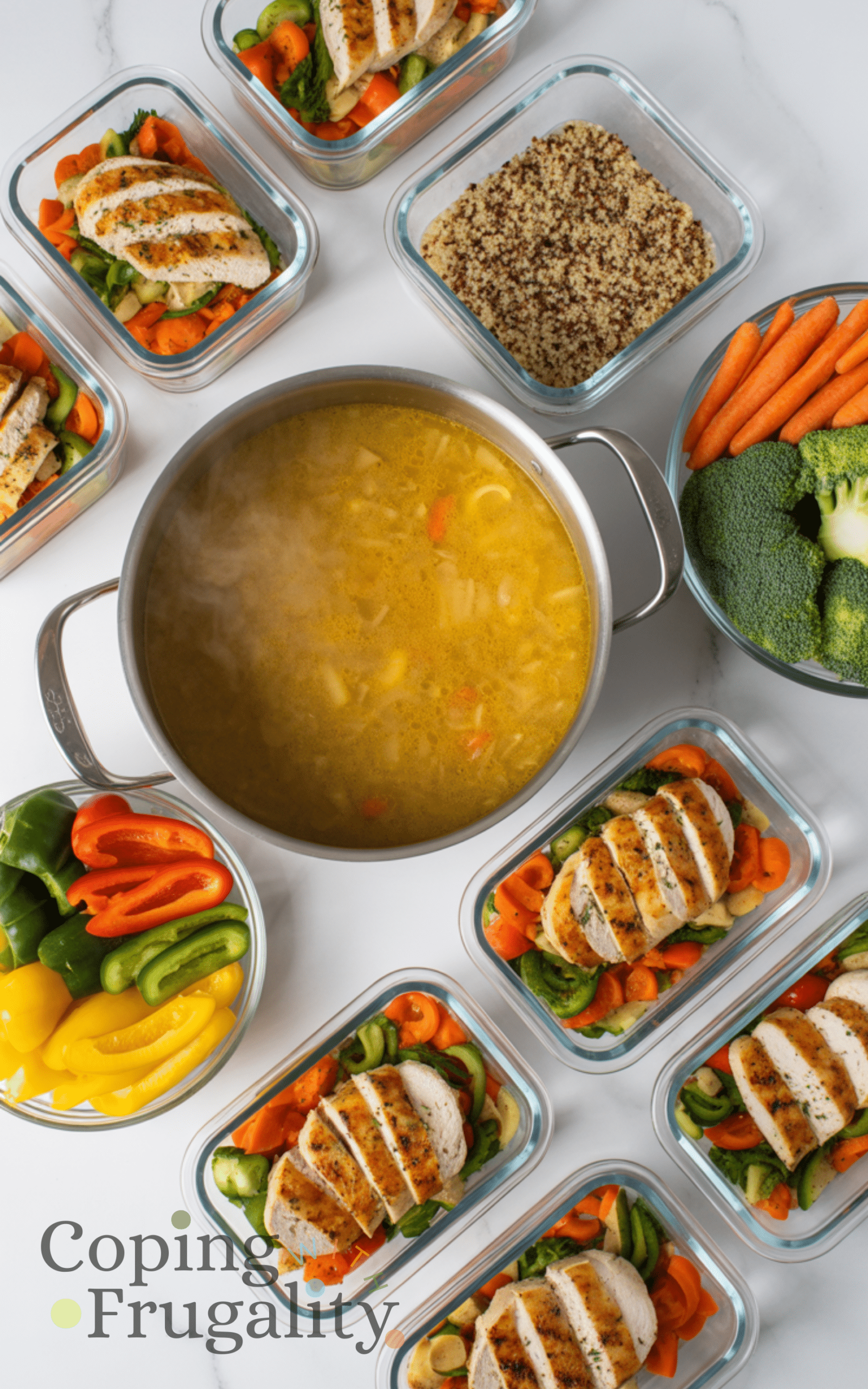 I use something called batch cooking. This means I cook a lot of food at one time, and then I eat it for several days. For example, on Sunday, I might make a big pot of chili. We eat it for dinner on Sunday, I pack it for my husband’s lunch on Monday and Tuesday, and we might eat it again for dinner on Wednesday. That’s one cooking session for four meals!