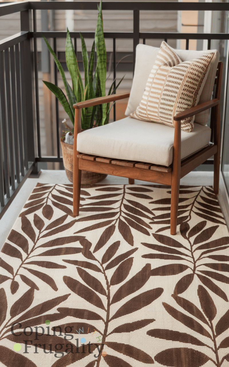 Adding a soft, weather-resistant rug instantly warms up your balcony and makes it feel cozy and stylish. Look for rugs that are easy to clean and can handle a little winter moisture. A layered rug effect with smaller mats adds depth without breaking your budget. This simple addition transforms the space into a comfy winter retreat where you can enjoy your morning coffee or read a book, making your balcony makeover for winter on a budget feel inviting and stylish while keeping it practical and cozy.