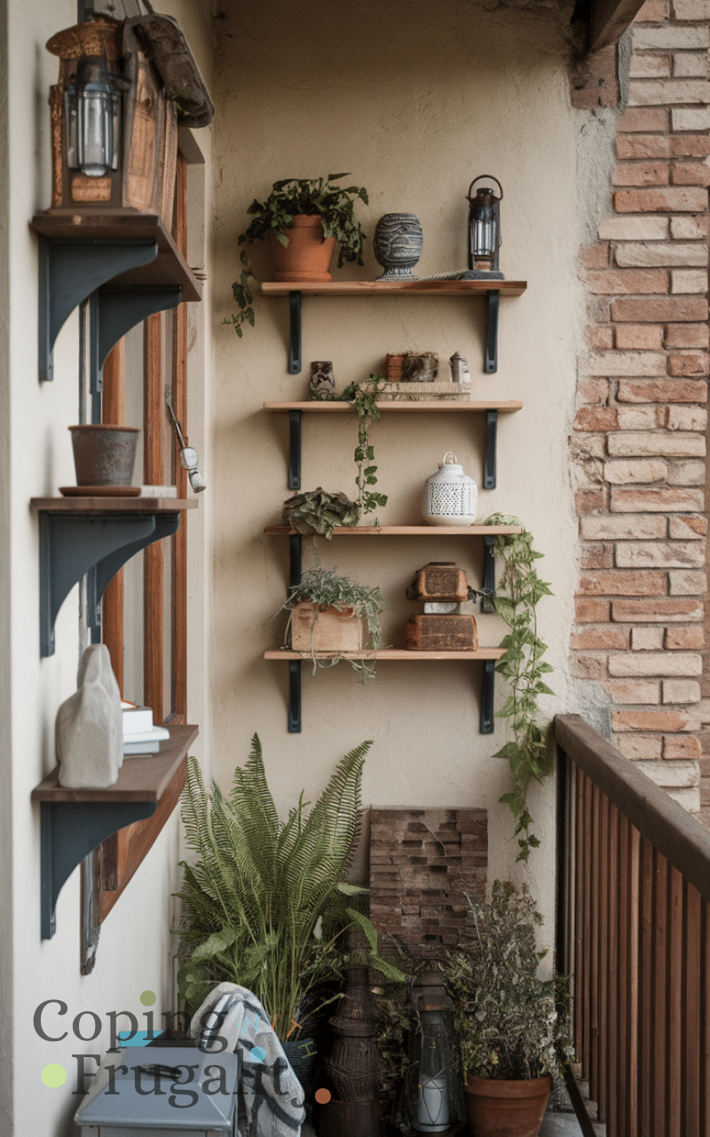 Wall-mounted shelves are a clever, budget-friendly way to display plants, lanterns, or décor items. They free up floor space while adding character to your balcony. Including shelves in your balcony makeover for winter on a budget allows you to organize items neatly while making the space stylish and cozy. You can use them for small storage or decorative accents, creating a layered, inviting atmosphere. Simple DIY options make this an affordable and practical addition that elevates the winter vibe of your balcony.
