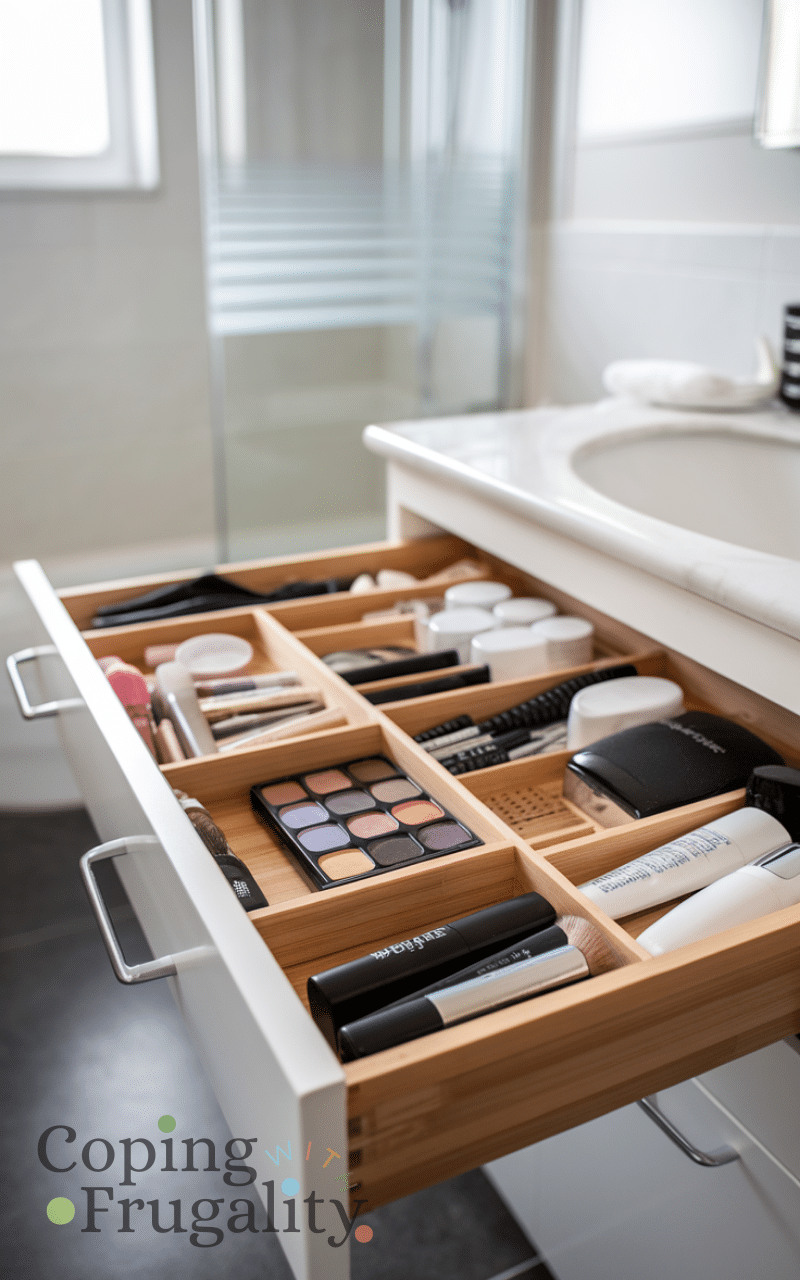 Drawer dividers are essential when it comes to keeping small items in order. Following the best bathroom decluttering checklist on a budget that makes organizing super easy, dividers help separate makeup, toiletries, or grooming tools. This prevents messy drawers where items get lost or damaged. Affordable plastic or bamboo dividers can fit any drawer size, creating a customized solution for your storage needs. Organized drawers not only save time in your daily routine but also reduce stress, making it easier to find exactly what you need when you need it.
