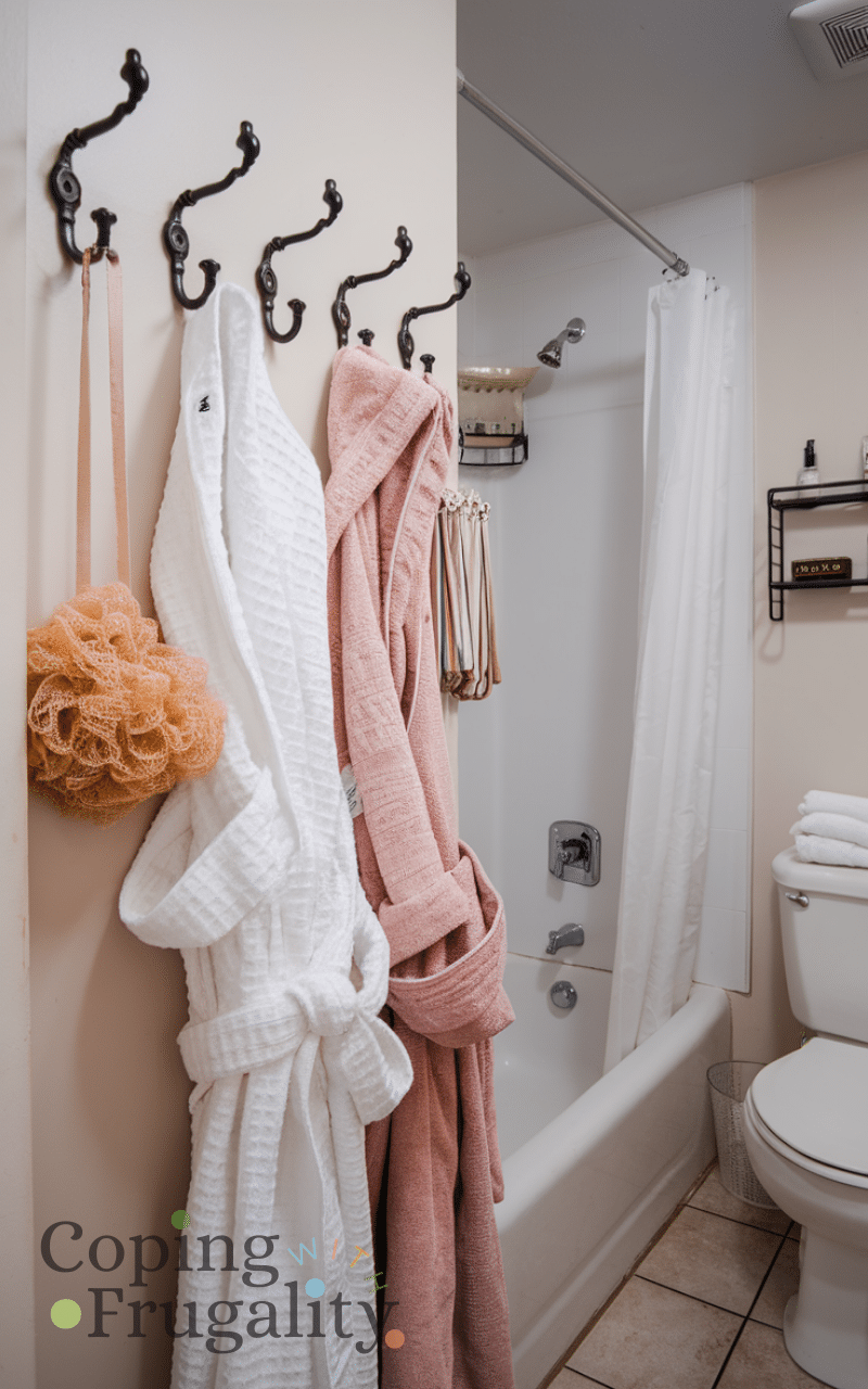 Hooks are inexpensive and effective for decluttering. The best bathroom decluttering checklist on a budget that makes organizing super easy recommends using hooks to hang robes, loofahs, or hair accessories. Hooks make use of vertical space and keep items off surfaces, instantly clearing counters and drawers. They’re easy to install and flexible, allowing for rearrangement whenever needed. This small addition improves the functionality of your bathroom while maintaining a tidy, organized feel. Hooks are a budget-friendly solution that makes organizing effortless and keeps your space looking neat and welcoming.
