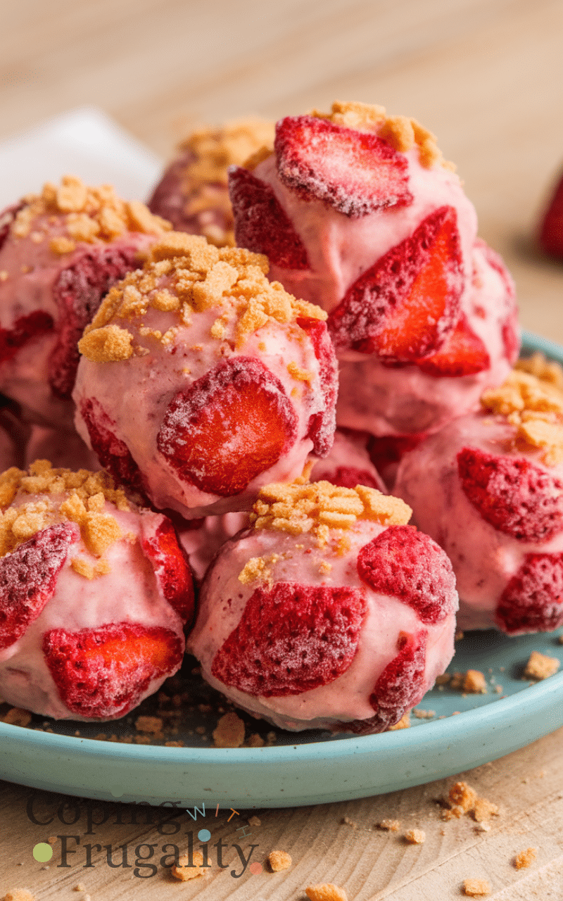 These strawberry cheesecake protein balls feel like a treat straight from a bakery. Freeze-dried strawberries, cream cheese flavoring, and protein powder make them creamy and sweet. This No Bake Protein Balls Recipes idea is perfect for special occasions or when you want something fun and different.