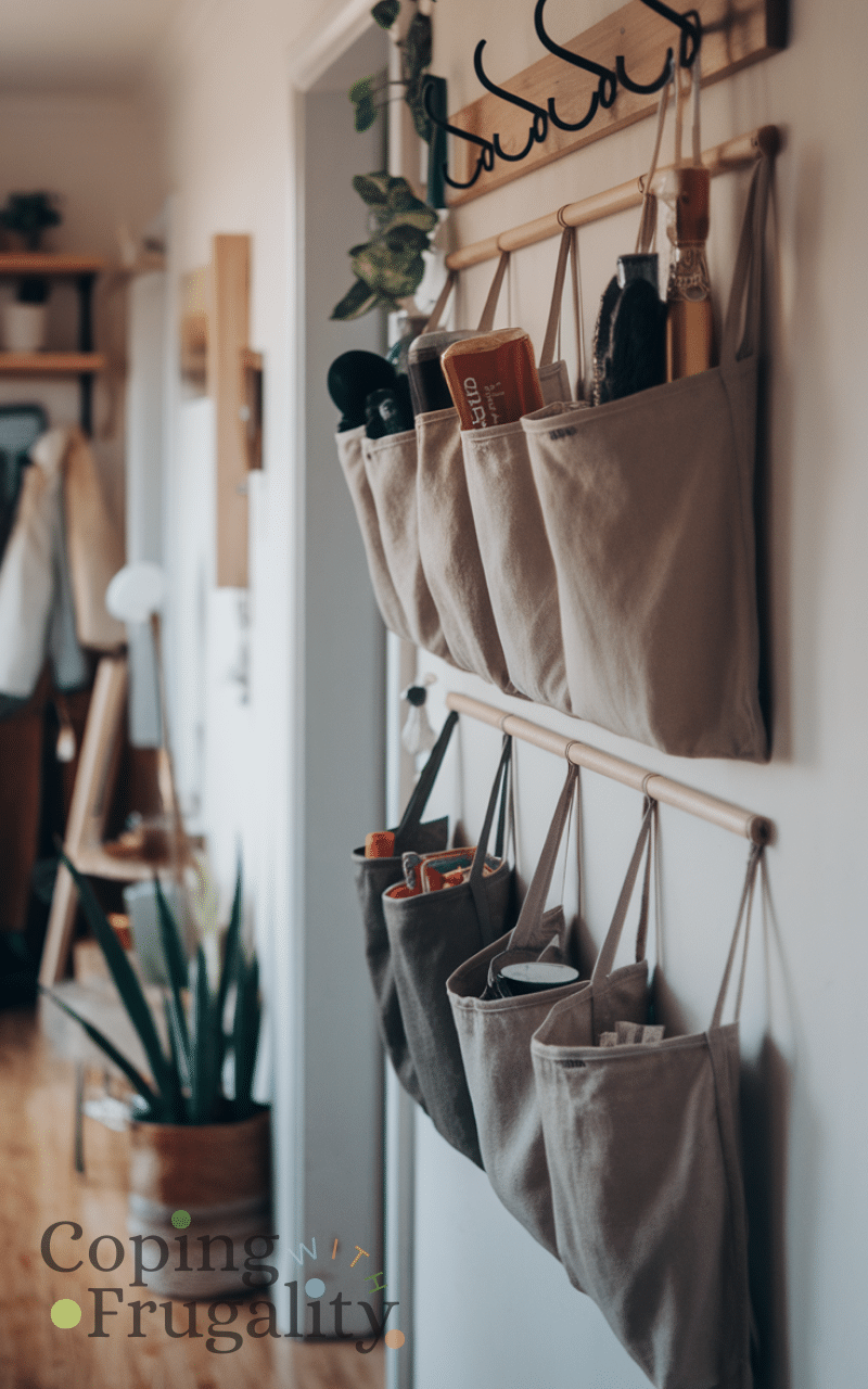 Fabric organizers are simple Hallway Storage Ideas on a Budget because they are lightweight and easy to hang and you can store gloves or keys or kids items inside the pockets so the hallway stays clean and ready for everyday use and this idea is perfect for families because each person can have their own pocket and the fabric adds a soft decorative touch to the space.