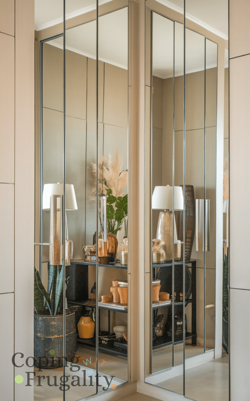 Mirror cabinets offer two functions at once which makes them excellent Hallway Storage Ideas on a Budget and they let you check your look before leaving while storing small essentials inside the cabinet and this idea saves space and adds brightness because mirrors make the hallway feel larger and more open and it is ideal for narrow hallways that need both light and storage.