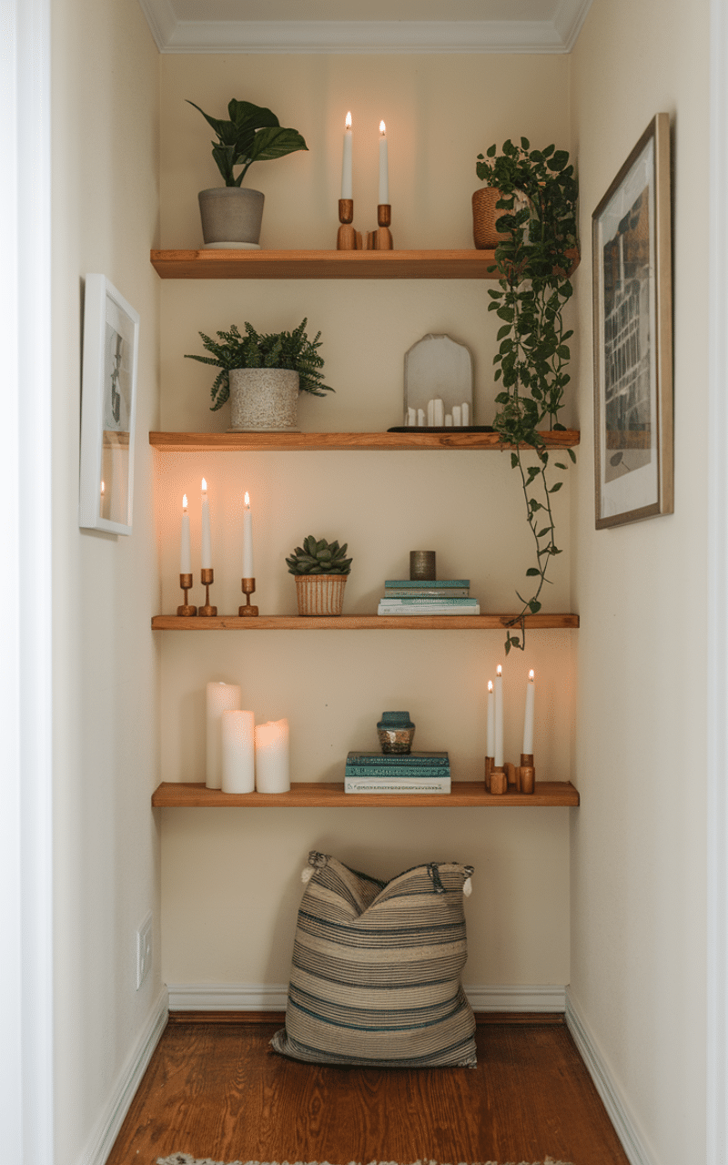 Floating shelves are perfect for narrow hallway decor on a budget because they provide storage and style without eating up floor space. Keep shelves slim and decorate lightly with small plants, candles, or books. Avoid overcrowding to maintain an open feel. Even one or two shelves can make the hallway feel thoughtfully designed.