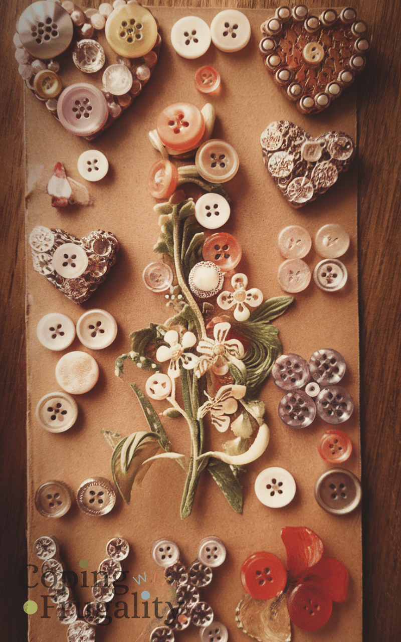 Vintage button decor fits naturally into vintage crafts on a budget and you can collect buttons from old clothes or sewing boxes and you can glue them into shapes like hearts flowers or initials on a piece of cardboard or cloth and this creates a charming textured artwork that looks old fashioned and sweet and you can hang it on the wall or place it on a shelf and this lovely craft costs almost nothing and it enhances your collection of vintage crafts on a budget.