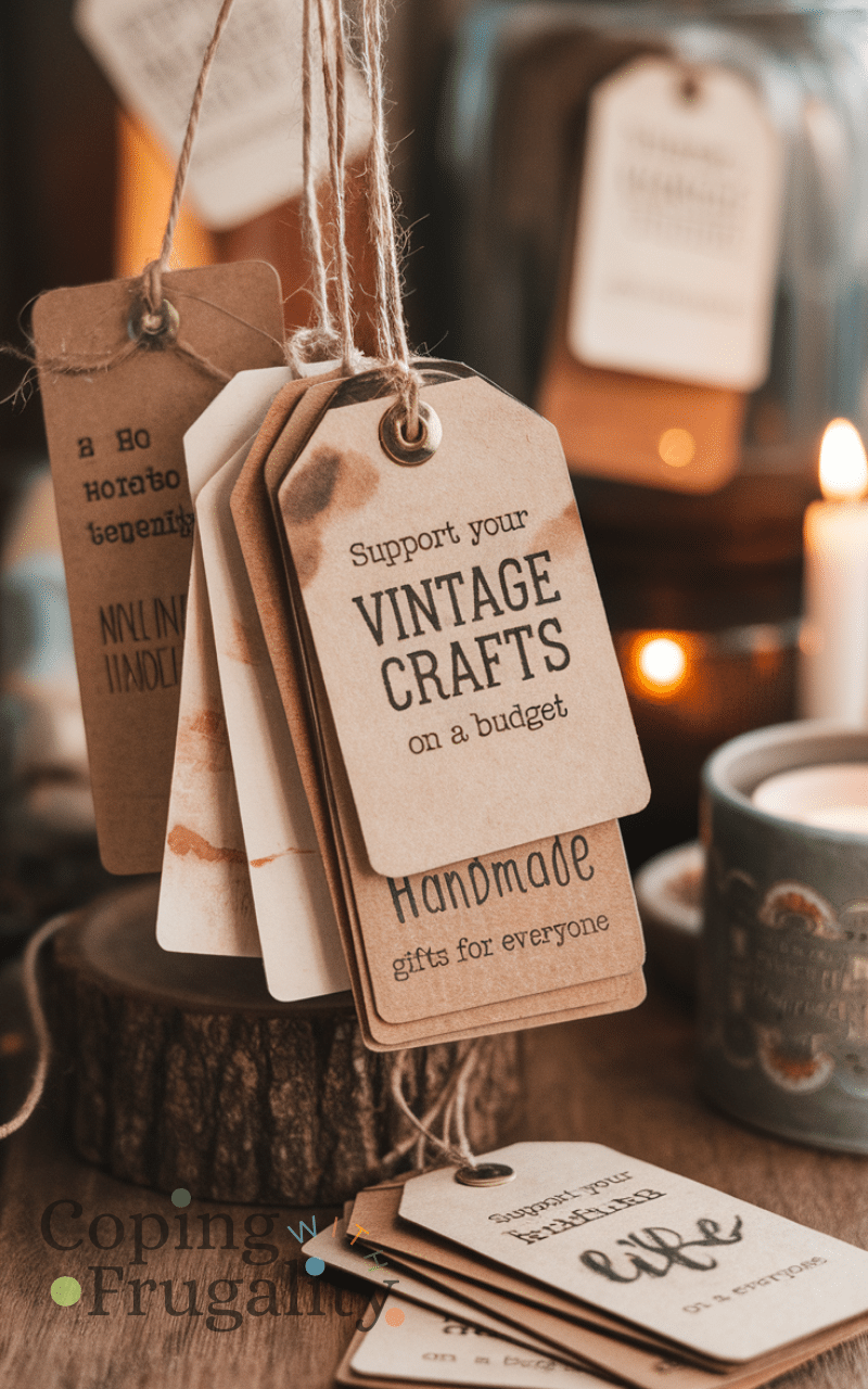 Handmade vintage tags support your vintage crafts on a budget by giving you beautiful labels and decor pieces and you can create them from cardboard tea stained paper and twine and you can write names quotes or dates on them and use them as gift tags bookmarks or hanging decor and this craft is affordable simple and wonderfully vintage and it fits your overall theme in a natural way.