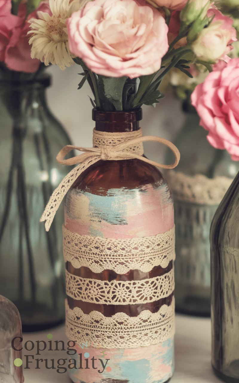 Decorative glass bottle vases support your vintage crafts on a budget beautifully and you can collect empty bottles and decorate them using lace twine or soft pastel paint and this gives them a charming antique look you can use for flowers or display pieces and this idea is simple and affordable and it adds character to your home while staying true to your vintage crafts on a budget.