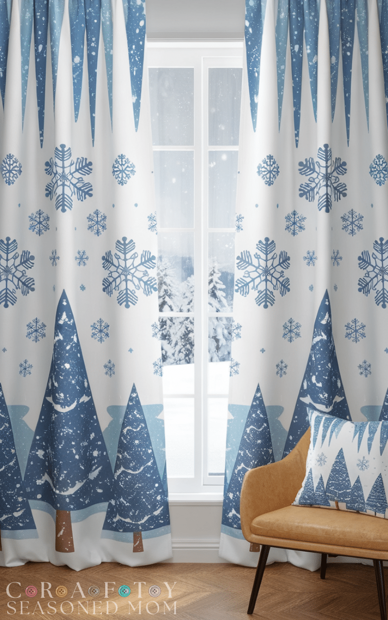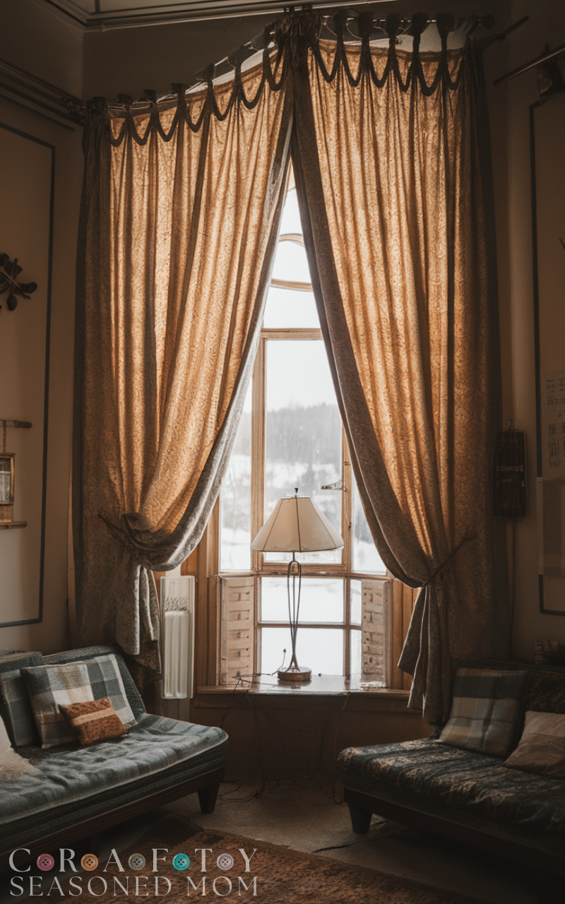 Adding a small valance at the top can enhance the cozy feel without using much material. This winter curtain styling on a budget creates a layered look and adds softness to your window area.