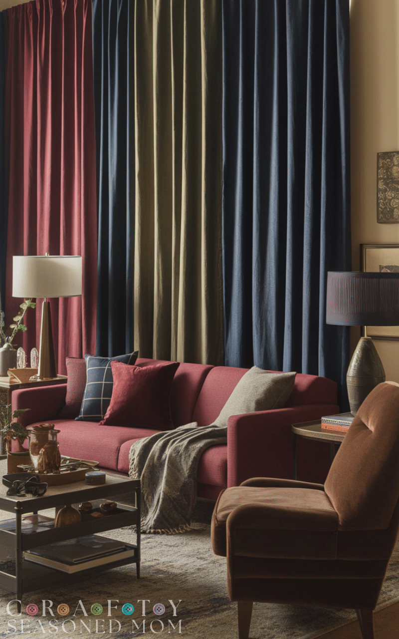Deep, warm tones like burgundy, forest green, navy, or chocolate brown enhance the cozy vibe. Using these shades as part of your winter curtain styling on a budget brings warmth to any room while maintaining a rich, inviting look.