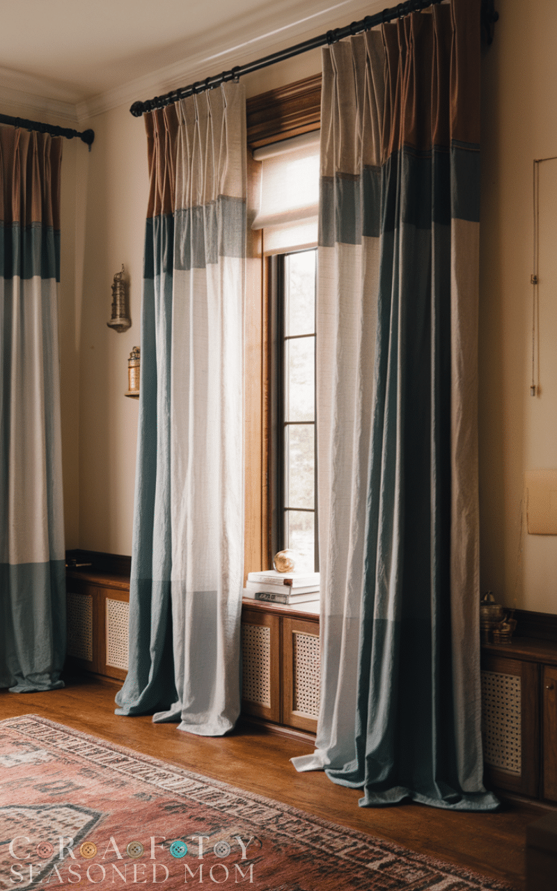 Ensure curtains reach the floor for maximum warmth and a polished look. Full-length curtains are essential in winter curtain styling on a budget, giving your rooms a cozy, complete, and elegant feel without needing luxury fabrics.